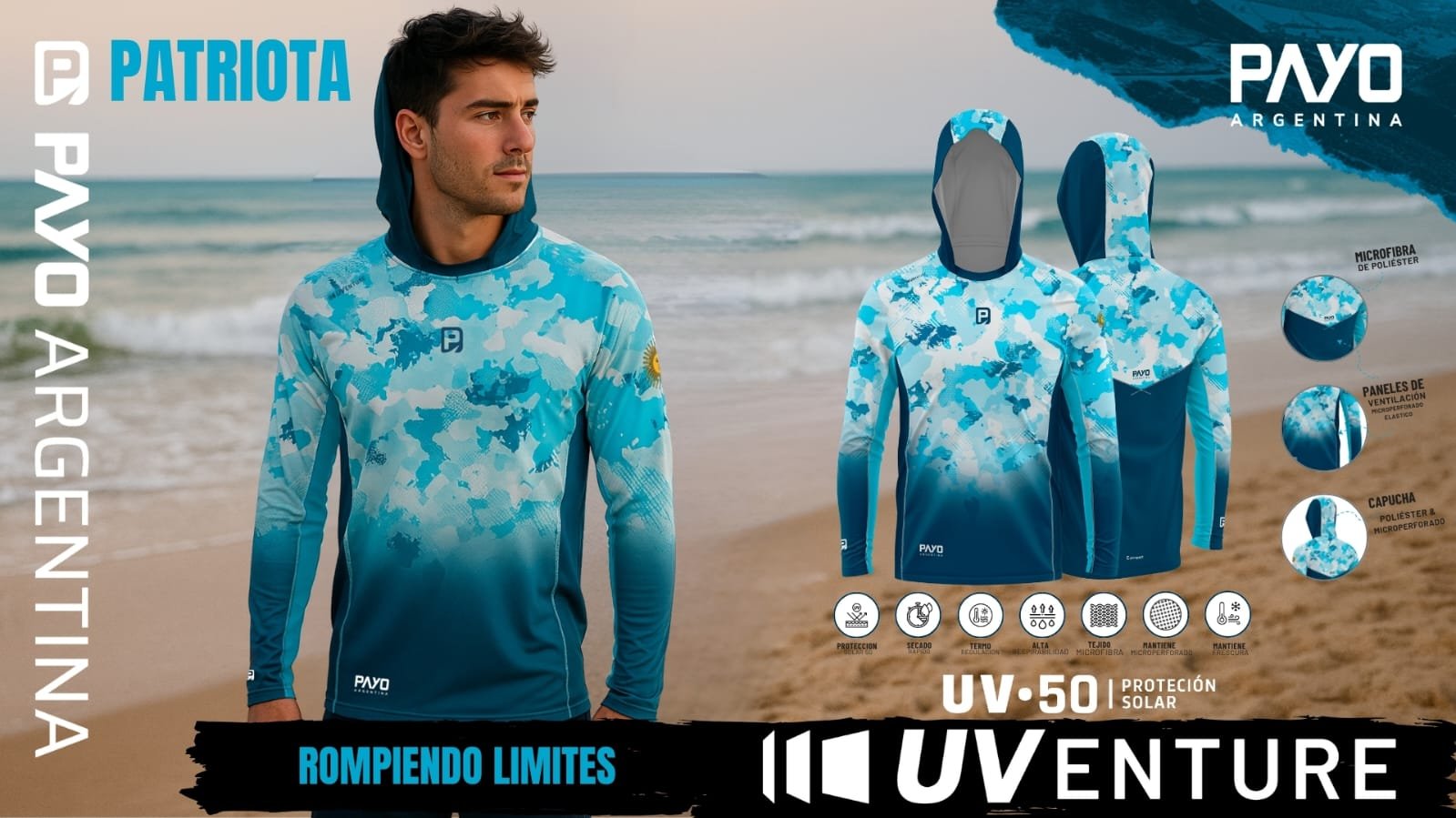 Las remeras UVenture U combinan dos tejidos de alto rendimiento desarrollados para ofrecer máximo confort, protección y durabilidad en actividades al aire libre. PROTECCION UV50+